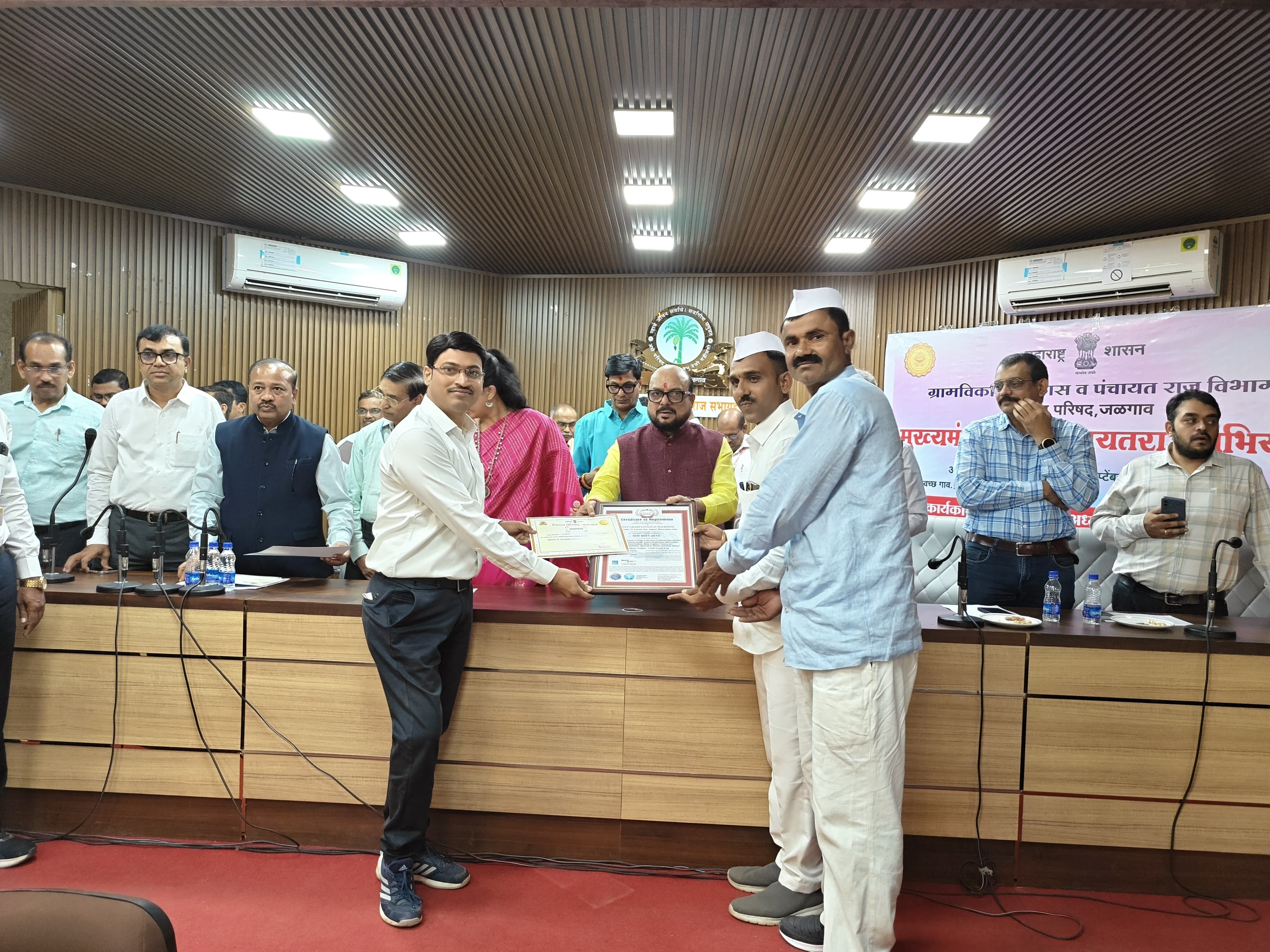 दिनांक 22/11/25 रोजी जिल्हा परिषद जळगाव येथे ग्रामपंचायती कडून राबविलेले विविध उपक्रम तसेच ग्रामपंचायत ISO केल्याबद्दल बद्दल पाणीपुरवठा व स्वच्छता मंत्री महाराष्ट्र राज्य तथा पालकमंत्री जळगाव मा.नामदार श्री. गुलाबरावजी पाटील यांच्या हस्ते, मुख्य कार्यकारी अधिकारी सो.तसेच सर्व विभाग प्रमुख जिल्हा परिषद जळगाव यांच्या उपस्थितीत गौरविण्यात आले.